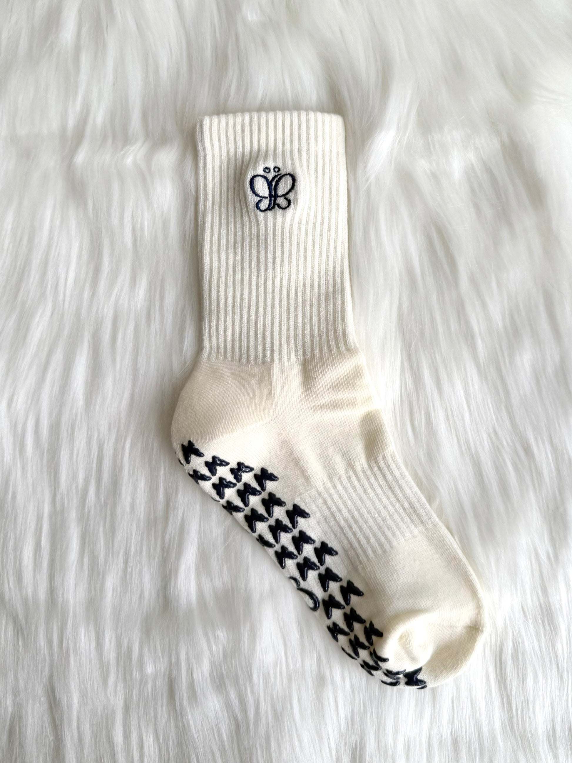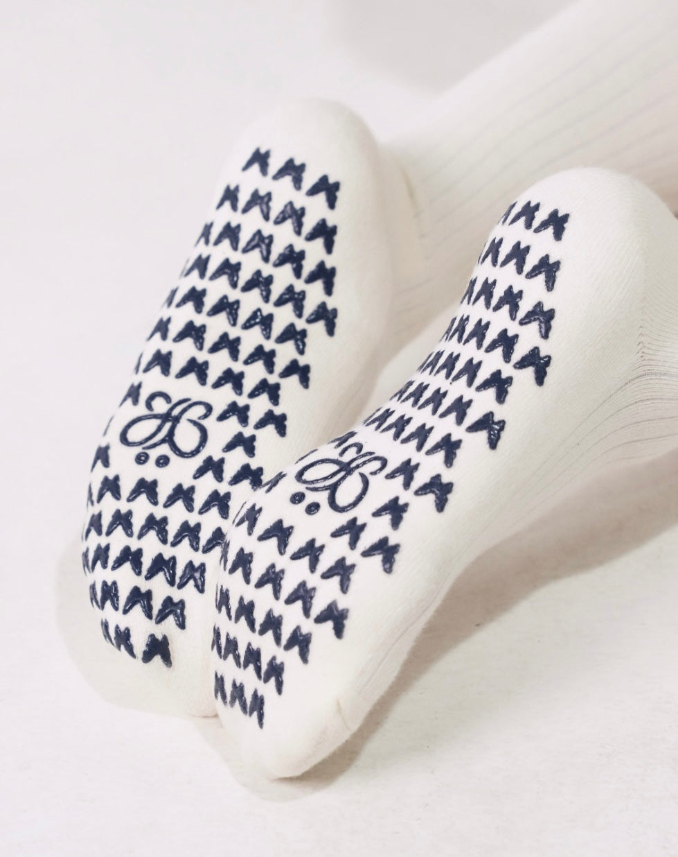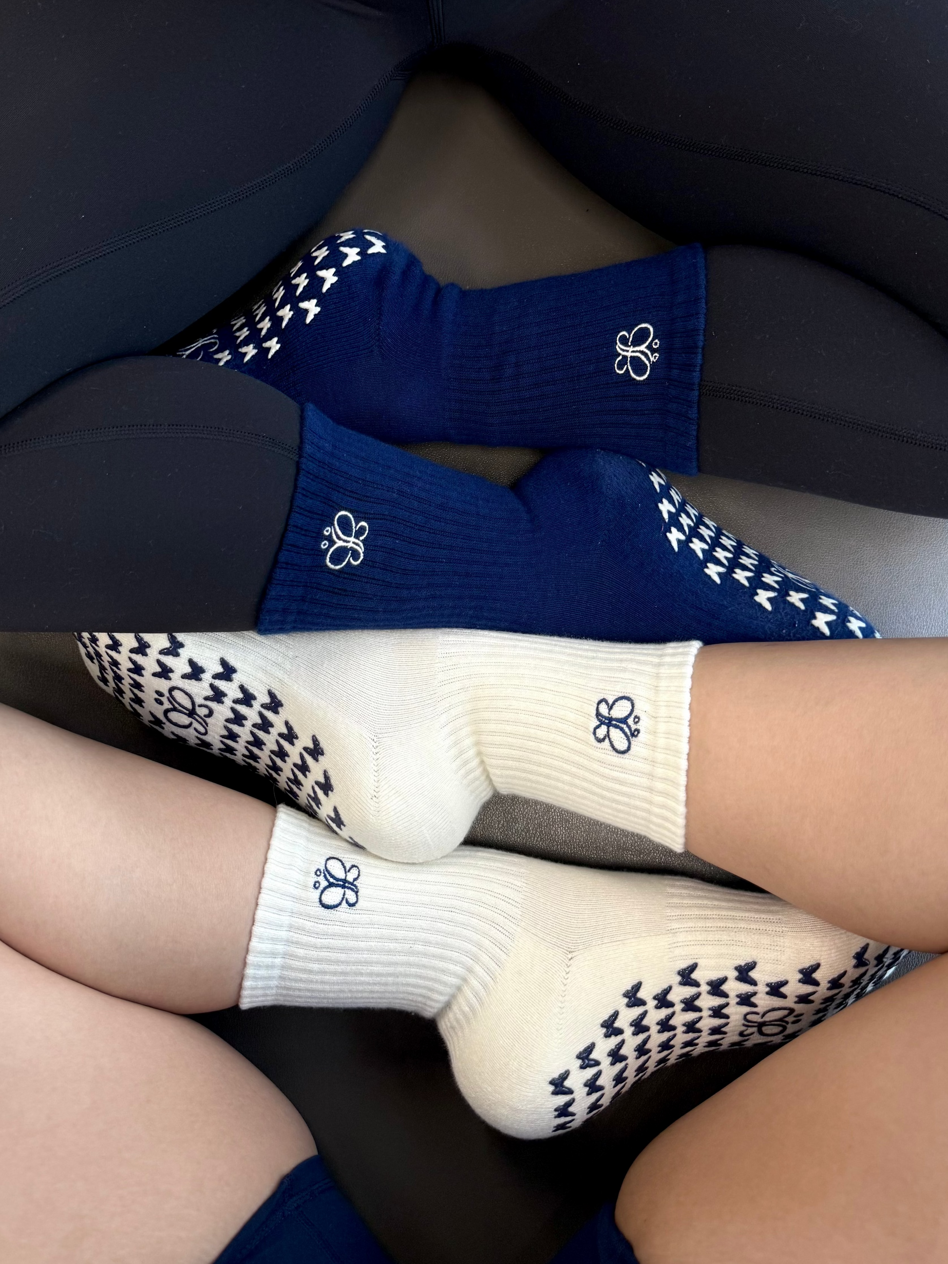 While the knee-high offers a more elongated, statement silhouette, the crew length delivers everyday ease with a softer profile—maintaining the same grip, comfort, and quality, just reimagined in a shorter form.